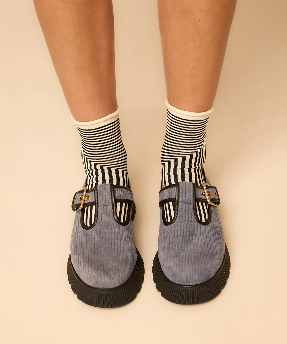 Hansel from Basel roll cuff socks made of mercerized cotton featuring graphic design inspired by the Swiss-French architect Le Corbusier.