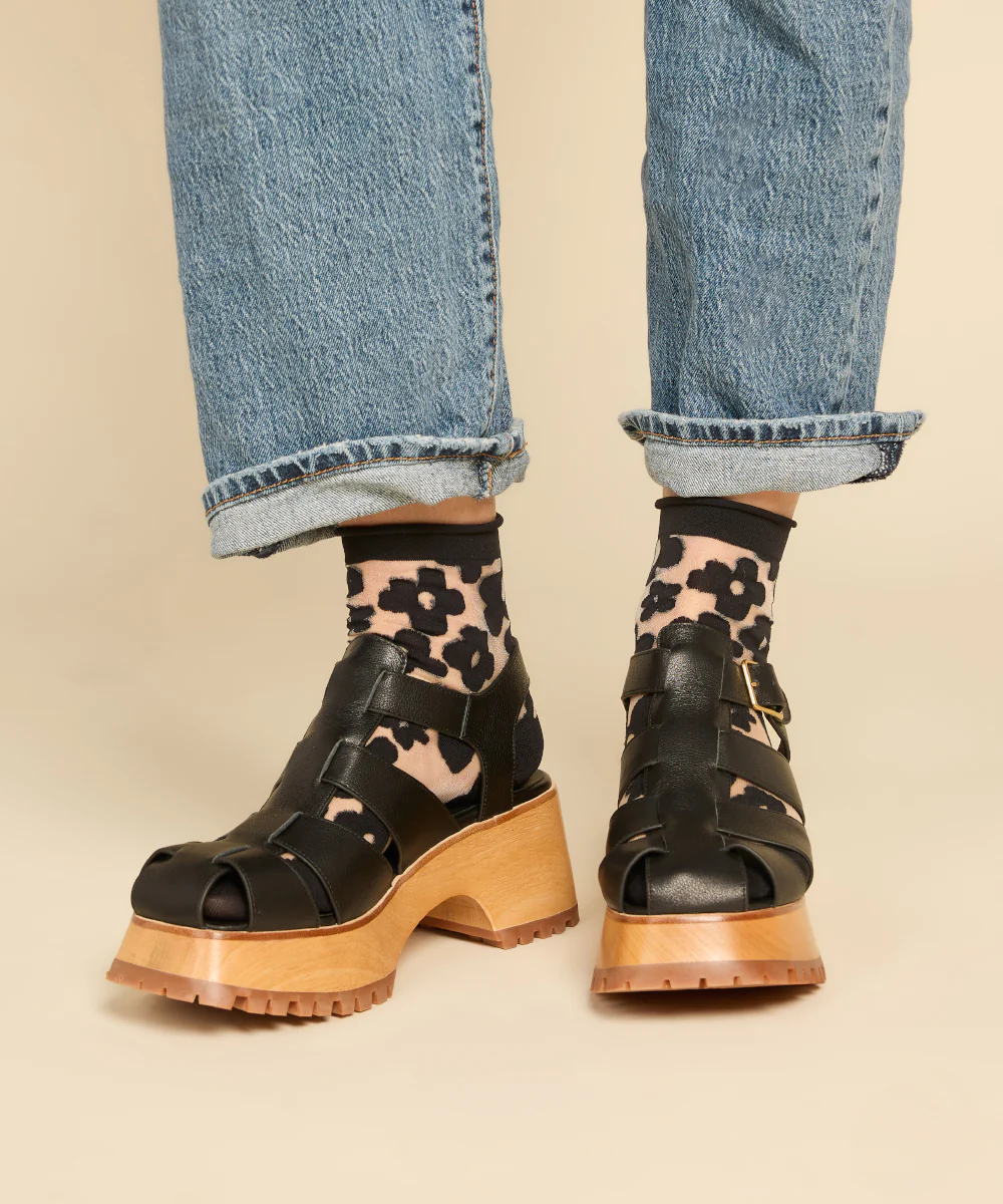 Hansel from Basel sheer crew socks with floral motif.